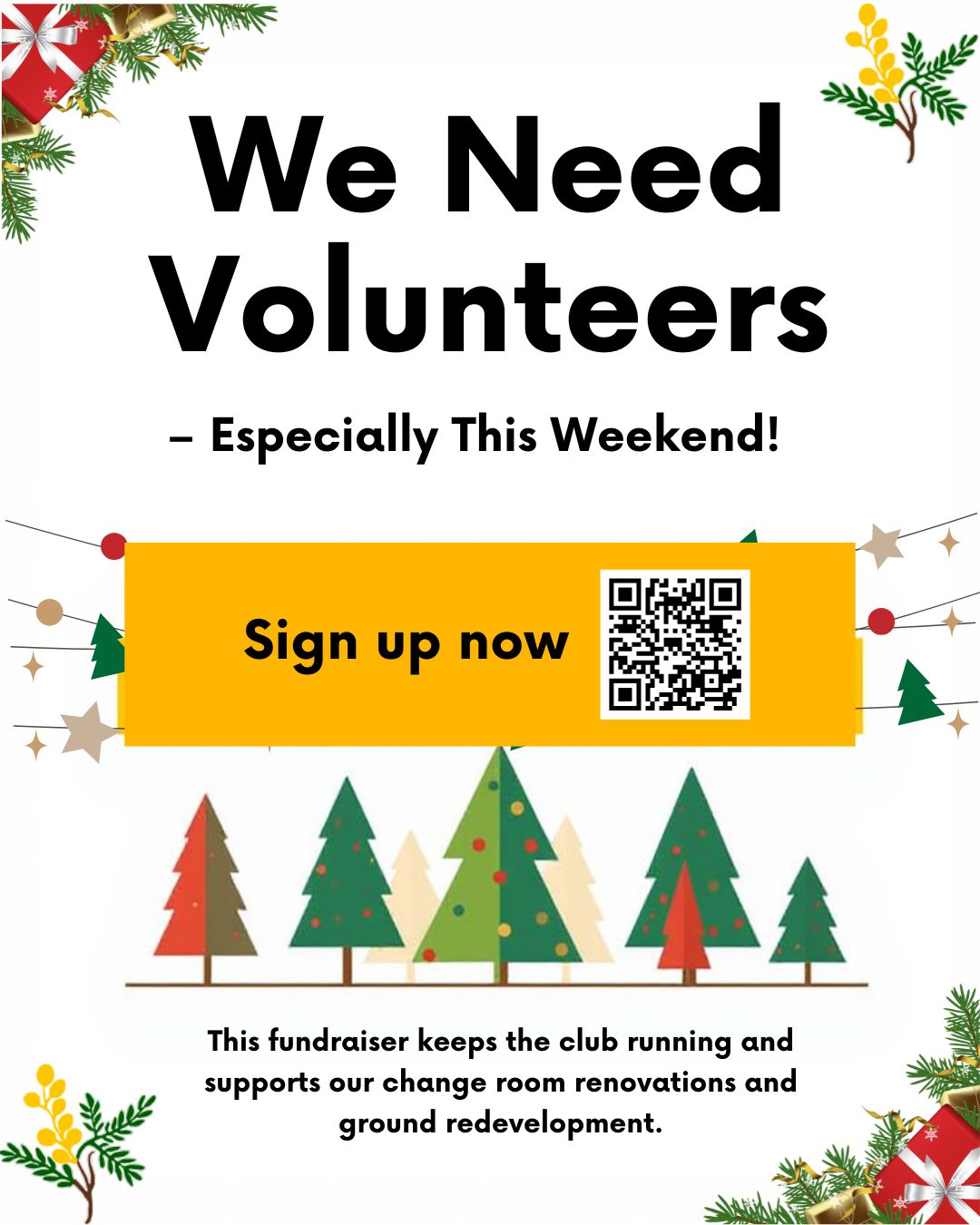 Our tree sales are the biggest fundraiser of the year, and the success of the next couple of weekends will determine how much we can invest back into the club. Even one shift makes a huge difference.