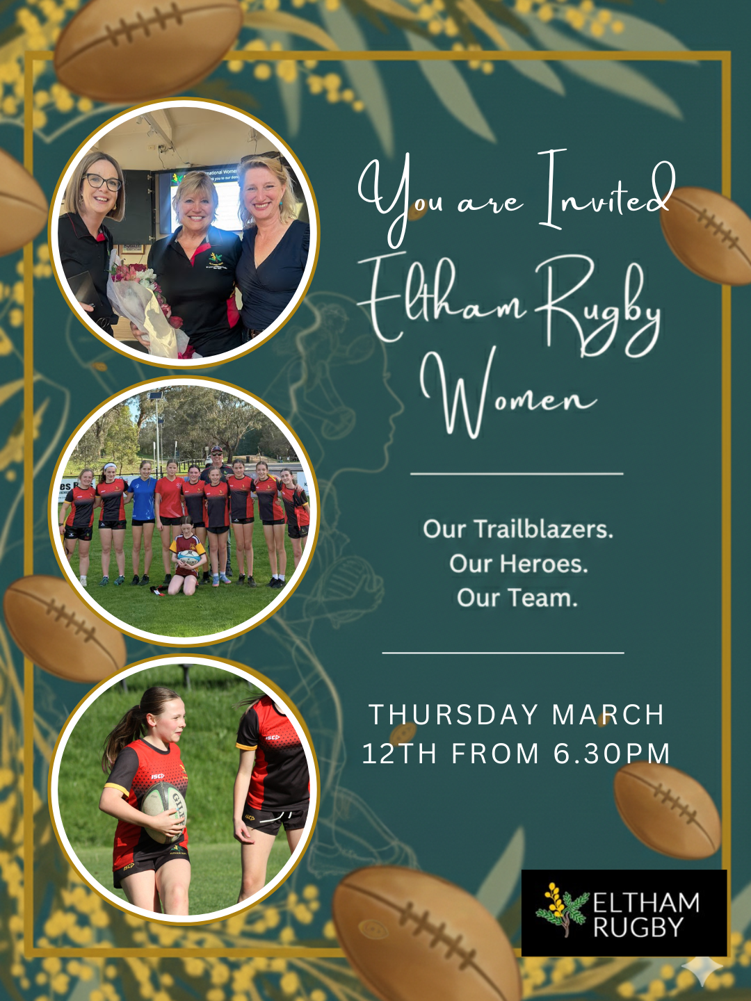Eltham Rugby will mark International Women’s Day next Thursday with a special club event celebrating the women and girls who contribute so much to our rugby community.